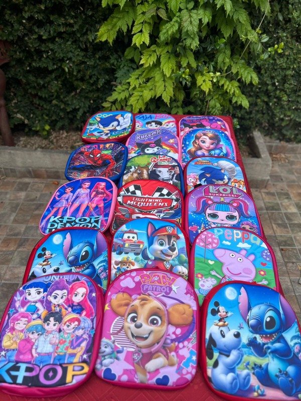 12 Mochilas infantilrs con tiras regulables de 32 CM de alto por 30cm de ancho y 10 de profundidad