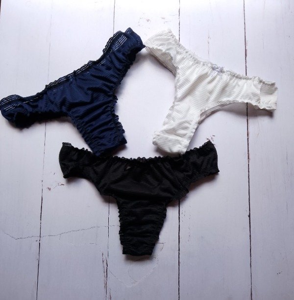 Docena de colaless con bordes fruncidos en te a colores Negro, azul y blanco de Morley abarcan hasta el 44 de pantalón